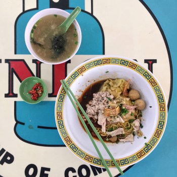 Minced meat noodle at 6SGD serving. You’ll never know how those dried fish and pork liver blends the soury spicy nature of the noodle sauce. 5, 8 and 10SGD serving choices are also available.