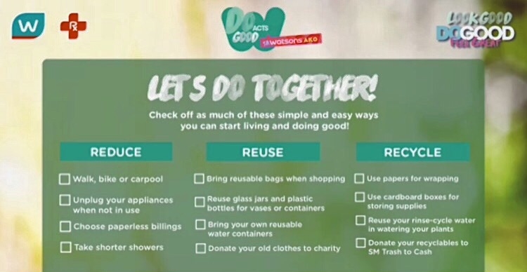 Do Good Act Checklist: Environment conservation thru 3Rs (Reuse, Recycle, Refill)